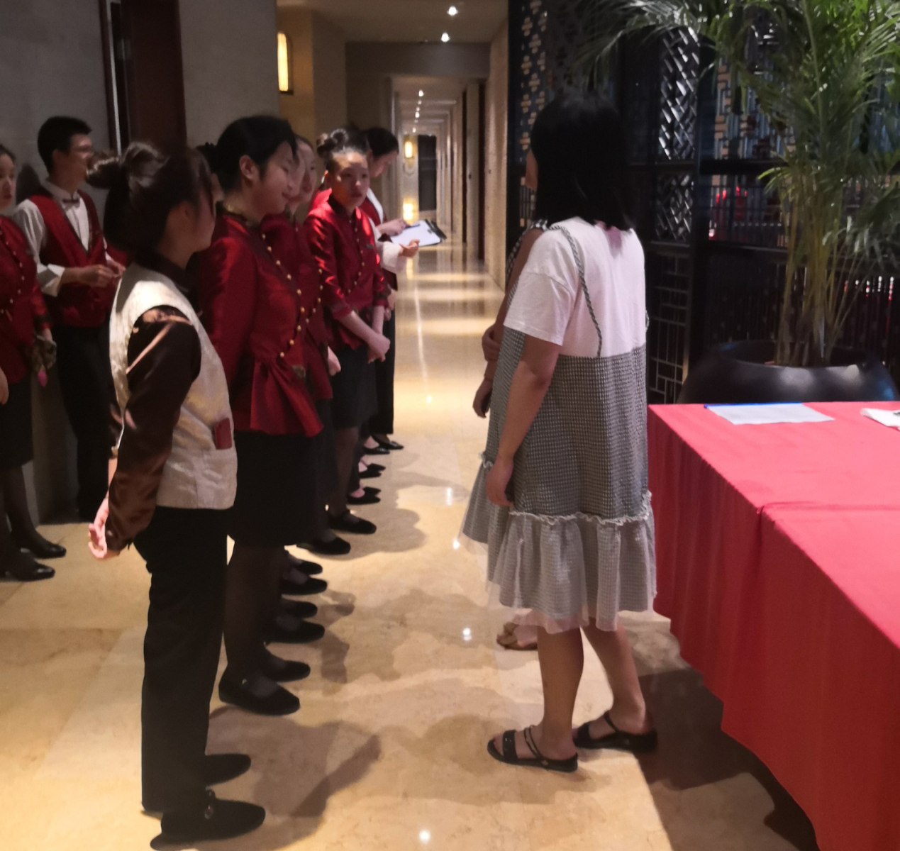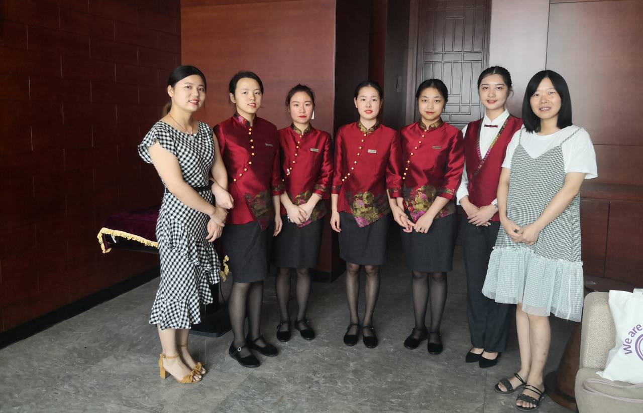 学生分别在餐饮部、宴会部、礼宾部、预订部、客房部等部门开展实习工作。我们一行人首先与酒店人力资源部总监和经理见面,对酒店提供的学习和锻炼平台表示感谢。之后与实习同学座谈,了解学生实习和生活的环境以及实习以来的收获及问题。各位同学一一介绍了自己的实习工作内容,工作中遇到的困难以及在克服困难过程中的收获。工作上的困难,同学们积极地想办法解决,不断调整自己的心态,主动向同事及领导学习优秀的服务经验。独立开展工作和英语交流的自信、性格的完善和专业素养的提升,这些都是同学们实习以来的收获。