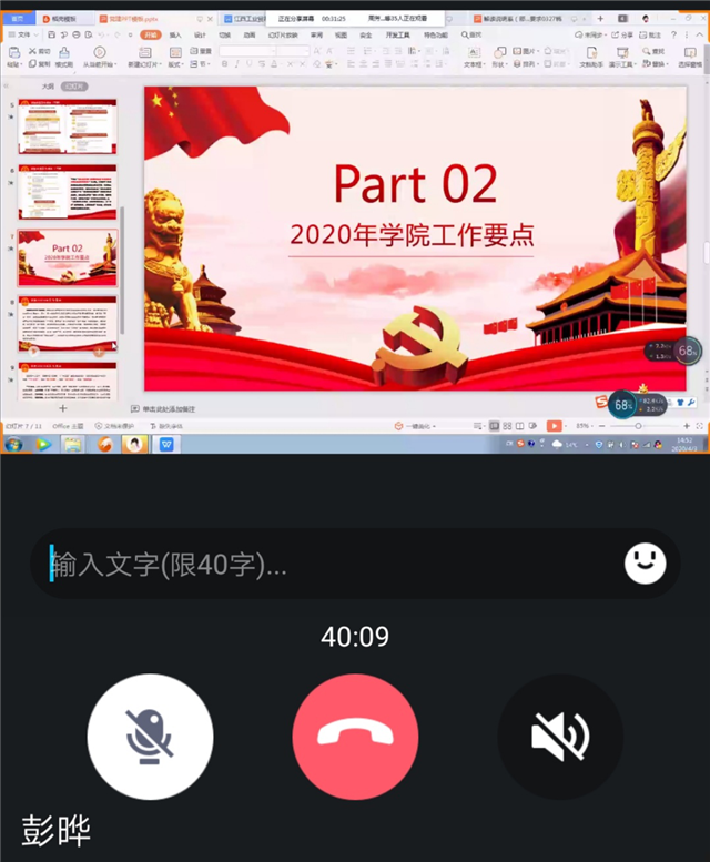 为牢固把握政治方向,以科学的理论武装头脑,凝心聚力,再战新征程。2020年4月3日下午,经济贸易系召开四月份第一次线上政治学习活动,35位教职工参加了此次学习,学习活动由经济贸易系主任彭晔同志主持。
