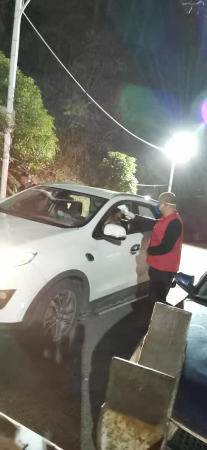 程光生同志在给过往车辆人员量体温