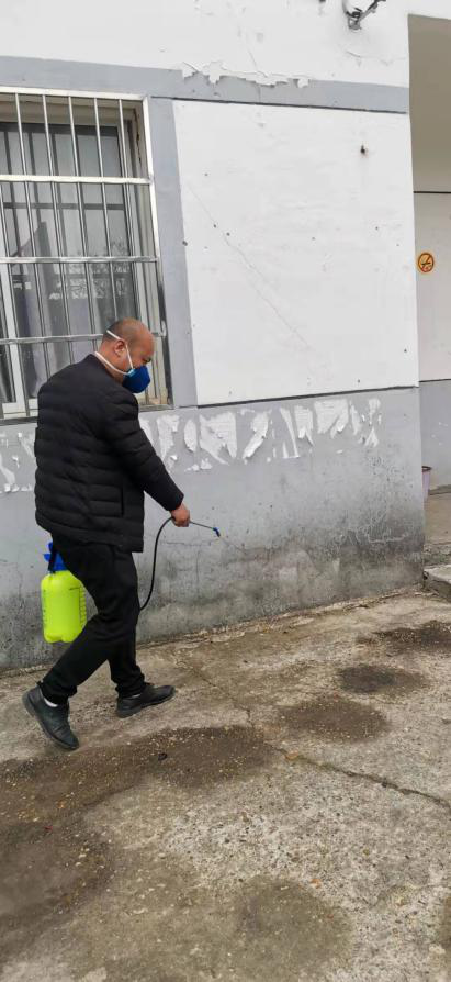 程光生同志在全村主要路段喷洒消毒液
