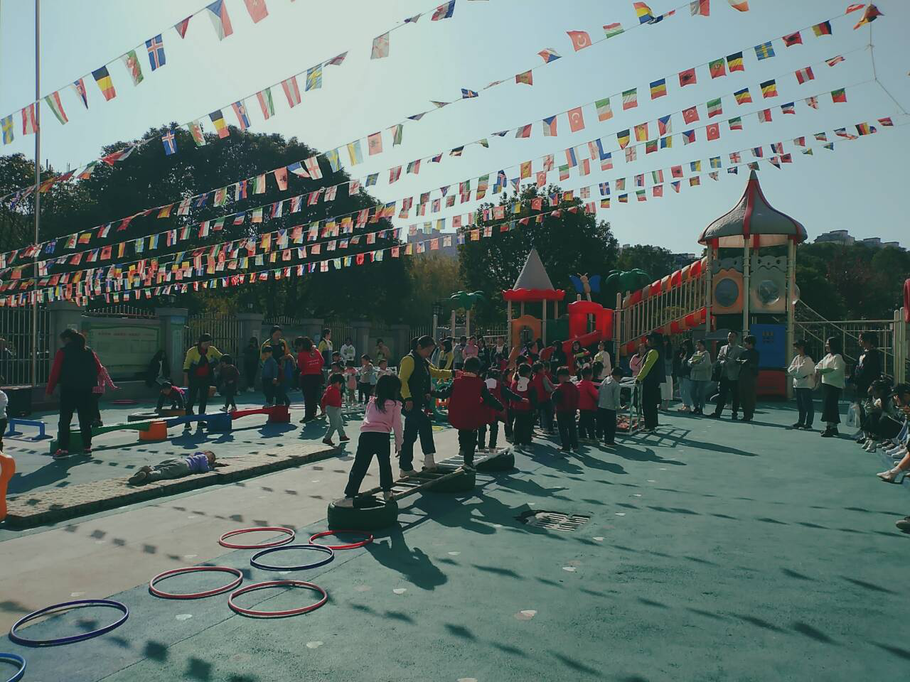 听完园长的介绍后,老师带领我们去参观了小朋友们的教室,还带着我们去看了小朋友在室内进行的海底捞区域活动和在户外进行的游戏活动。在活动的过程中,学生们积极参与小朋友的互动游戏。