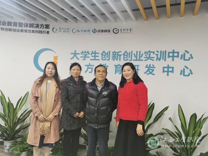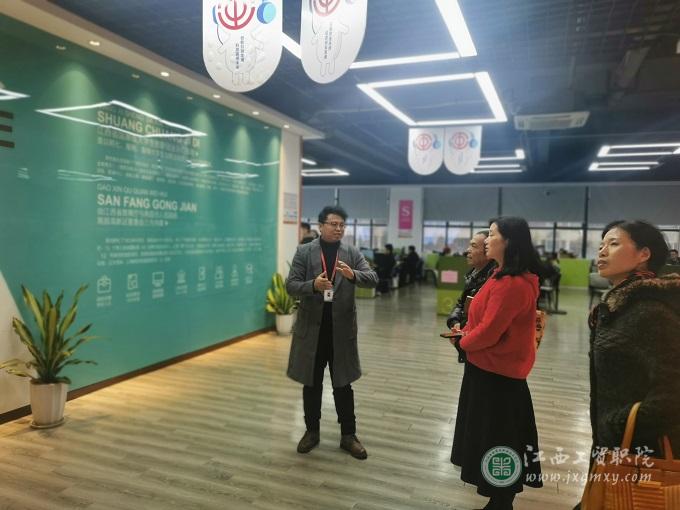 11月26日下午,江西工业贸易职业技术学院就业处·双创学院大学生创新创业课程组老师徐琳、马龙凤、淦菁、程梦圆走访考察江西省国家级大学生创新创业示范基地。