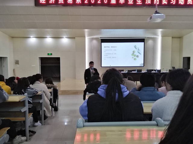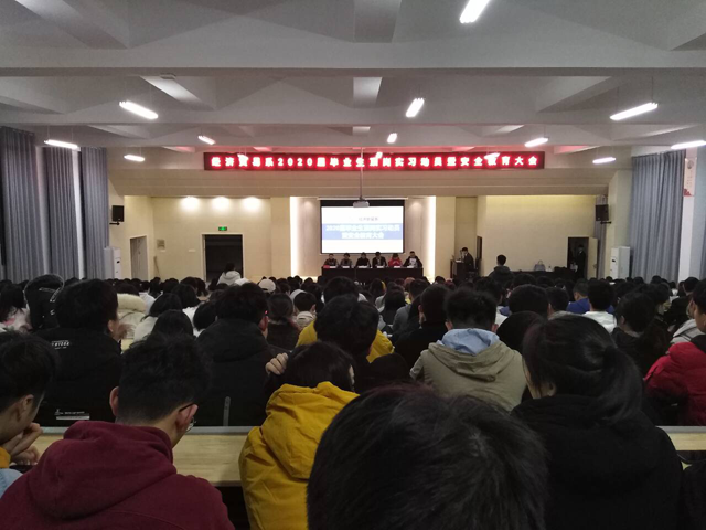大会共分实习动员与实习安全教育两个部分。在实习动员阶段,由经济贸易系主任彭晔、副主任范东辉分别向全体实习指导老师和2020届毕业生进行实习指导动员,他们指出实习指导老师和学生要提高思想站位,认清当前较为严峻的就业形势,提前做好规划,师生合力共同完成实习工作,为2020届毕业生的就业奠定坚实基础。随后,2020届金融管理班江永星、2020届毕业班辅导员霍而漫、校企合作单位南昌金源财务咨询管理有限公司熊总分别作为学生代表、教师代表和企业代表发言,他们表示在学院周密的实习就业工作部署下,校企生三方联动有信心完成好该项工作。