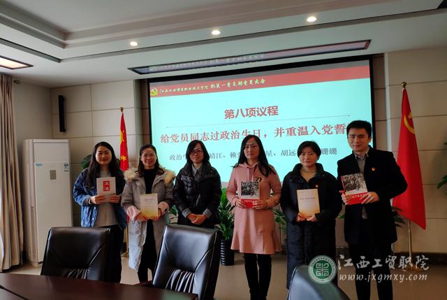 ,研究了吴拓同志党员发展相关事宜,通报支部志愿服务活动准备情况 ,并给五位党员同志过政治生日,支部书记王苏同志向过政治生日的同志赠送书籍,并带领大家重温入党誓词。(文/图 胡远诚)