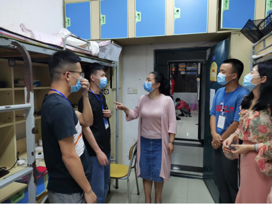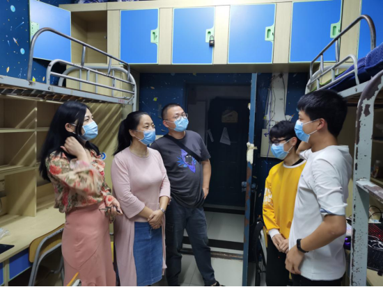 为更好的了解返校学生状况,密切关注学生动向,学工副主任陶晓峰、党员教师汤皖宁、支委委员熊婷于5月26日晚21:00深入学生宿舍,对学生返校隔离期间学生们的疫情防控管理进行检查,并及时了解学生学习生活上的困难,陶主任亲切说到:“同学们,欢迎回‘家’,你们如果在学习生活上有任何困难,要及时跟辅导员老师或者直接和系部反映,系部老师们都会尽最大的努力,为你们营造一个快乐的学习氛围。”