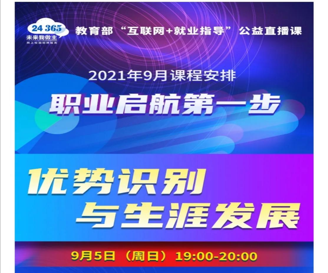 了提升旅游商务系学生积极求职择业的意识,培养学生就业创业的能力,9月5日19:00,我系组织全体学生观看教育部“互联网+就业指导”公益直播课 :优势识别与生涯发展。主讲老师为北京大学学生心理健康教育与咨询中心副主任、副教授庄明科教授。