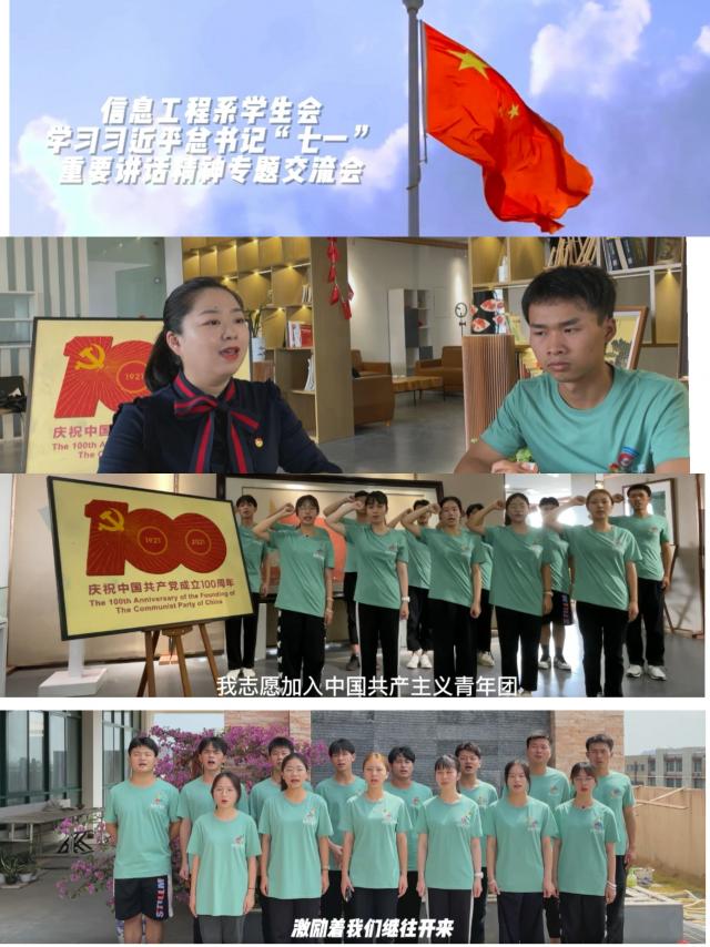 通过此次活动,激励信工青年,要时刻坚定自己的理想信念,树立远大的目标理想,以实际行动展现信工学子的精神面貌!同时我们也将牢记习近平总书记“七一”讲话中的寄语,不忘初心、砥砺前行,为祖国的建设和发展尽自己的一份绵薄力量!