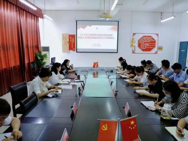 由江西省教育厅主办、江西工业贸易职业技术学院承办2021年江西省职业院校技能大赛“机器人系统集成”赛项11月上旬将在江西工业贸易职业技术学院机电工程系举办。为了对“机器人系统集成”赛项前期准备工作进行筹备,确保比赛顺利、高效、合理有序的开展,10月9日中午在机电工程系厚泽楼324光明党支部召开了承办江西省职业院校技能竞赛动员部署会。
