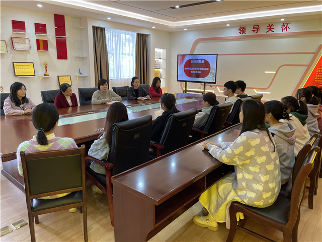 2021年江西省职业院校技能竞赛银行业务综合技能竞赛将于11月6日开赛,为全面了解竞赛队备赛状况,增进参赛选手信心,10月22日下午,经济贸易系在芳泽楼318会议室召开了2021年江西省银行业务综合技能大赛动员大会。经济贸易系主任彭晔、副主任何静、会计教研室主任胡越君、指导老师袁三梅,徐薇鸿,章盈及参赛学生参加了会议。会议由何静主持。
