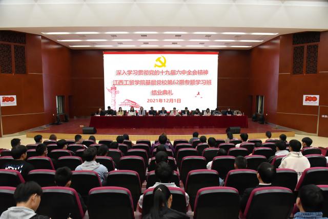 百年征程波澜壮阔,百年奋斗成就辉煌。12月1日,江西工业贸易职业技术学院举办深入学习贯彻党的十九届六中全会精神暨基层党校第62期“学习‘七一’讲话,坚定理想信念”专题学习班结业典礼。学院党委书记、基层党校校长万玉青出席结业典礼并讲话,学院党委副书记、院长、基层党校副校长雷筱芬,学院党委副书记彭锐出席结业典礼,党委组织部、学生工作处、团委等部门负责人,各党支部书记,团委、学习班指导老师及学习班全体学员参加结业典礼。雷筱芬主持结业典礼。