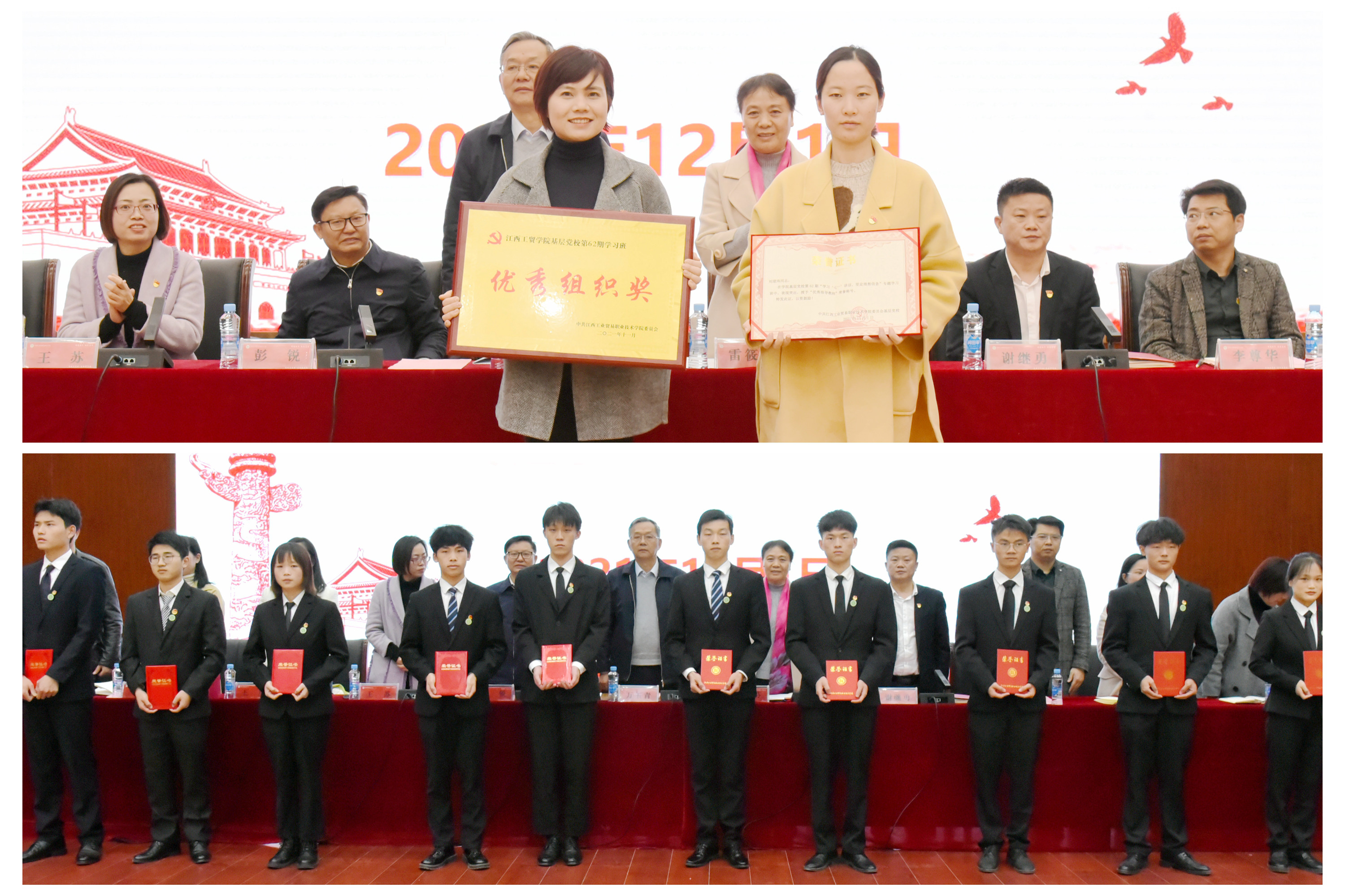 会上,党委副书记彭锐宣读《关于表彰学院基层党校第62期“学习‘七一’讲话,坚定理想信念”专题学习班“先进集体”“先进个人”的决定》,党委委员、信息工程系党支部书记谢继勇宣读《关于表彰学院第十一期大骨干培训班“优秀学员”“优秀班干”的决定》,党委委员、党委组织部部长王苏宣读基层党校《关于准予李颖等110名学员结业的决定》,团委书记王星宣读《关于准予熊艳琳等95名学员第十一期大学生骨干培训班结业的决定》。同时为学员代表颁发结业证书,为“优秀组织奖”“优秀指导老师”“优秀班干”“优秀学员”颁发荣誉奖牌或证书。本期学习班班主任、党委组织部副部长雷婧江对本期学习班作总结发言。六位学员代表汇报了学习体会。