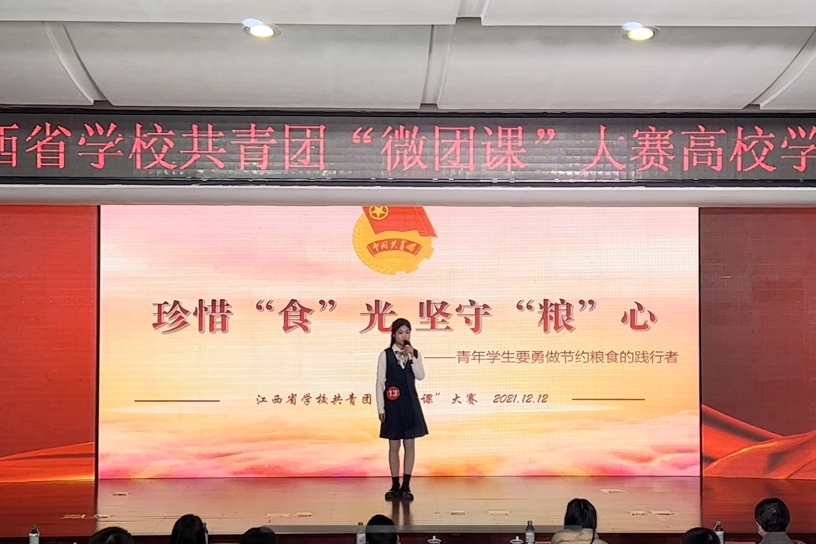12月12日至19日,由中共江西省委教育工委、共青团江西省委主办的第五届江西省学校共青团“微团课”大赛决赛在南昌举办。此次比赛旨在深入学习贯彻习近平总书记“七一”重要讲话精神,坚持以习近平新时代中国特色社会主义思想武装头脑、教育青年,认真贯彻落实团的十八大和十八届二中、三中、四中、五中全会精神,进一步夯实省内各高校共青团基层组织建设,丰富团课教学内容,创新团课教学形式。