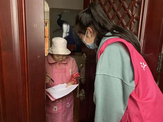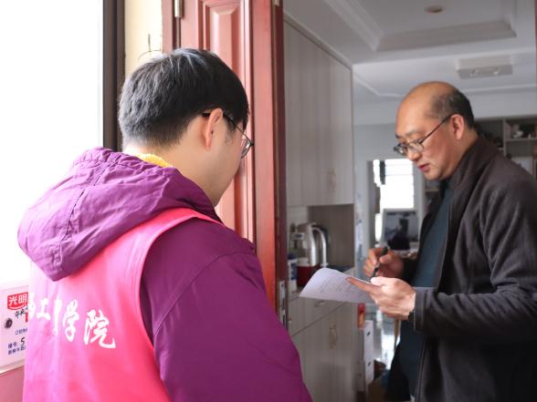 第三阶段,致远党支部与红谷滩区红角洲管理处香榭社区党支部党员同志深入社区联合开展了入户调研活动,并在走访过程中帮助居民检查了楼道消防安全等。