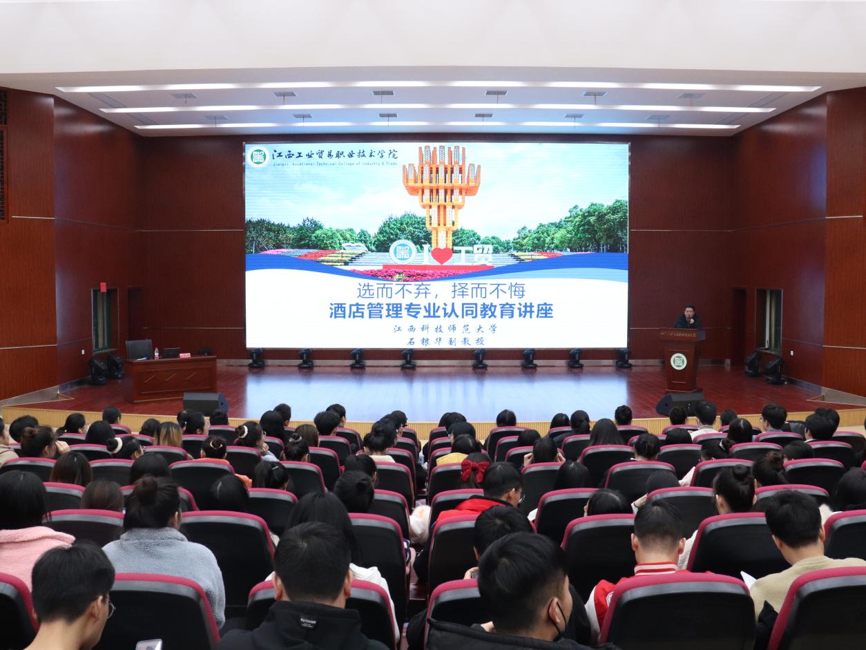 为了加强2021级联合培养本科酒店管理专业学生对自己所学专业的了解,增强专业认同感。旅游商务系于12月14日晚上18:30,在图书馆学术报告厅进行了酒店管理专业认同教育主题讲座。此次讲座由旅游商务系谢恺主任主持,联合培养合作学校江西科技师范大学石银华副教授作为讲座嘉宾,旅游商务系副主任韩莹、餐旅教研室主任吴姗、酒店管理专业教师以及21级酒店管理本科班全体同学200余人参加了此次讲座。