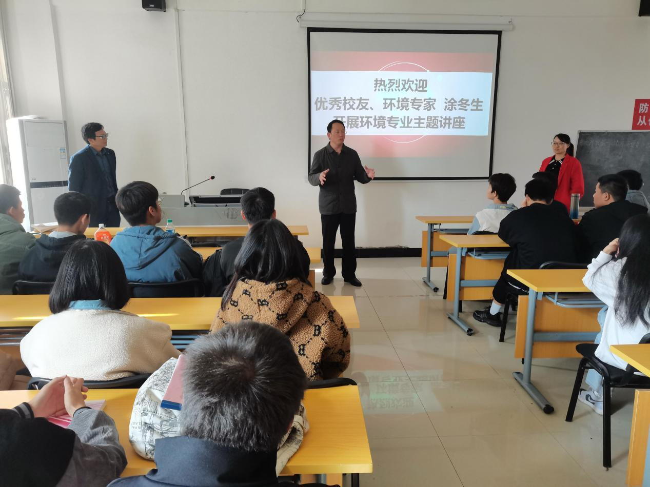 为响应生态文明建设号召,让天更蓝、山更绿、水更清、环境更优美,建设环境友好型社会,2021年12月10日下午,粮油食品系特邀环境专家、我校95届毕业生——涂冬生为20级和21级环境工程技术专业学生开展“生态文明建设有你有我”专题讲座,分享自己宝贵的学习和工作经验。系主任何隆权、教学副主任刘玉珍、环境工程技术专业负责人杨静出席此次讲座。