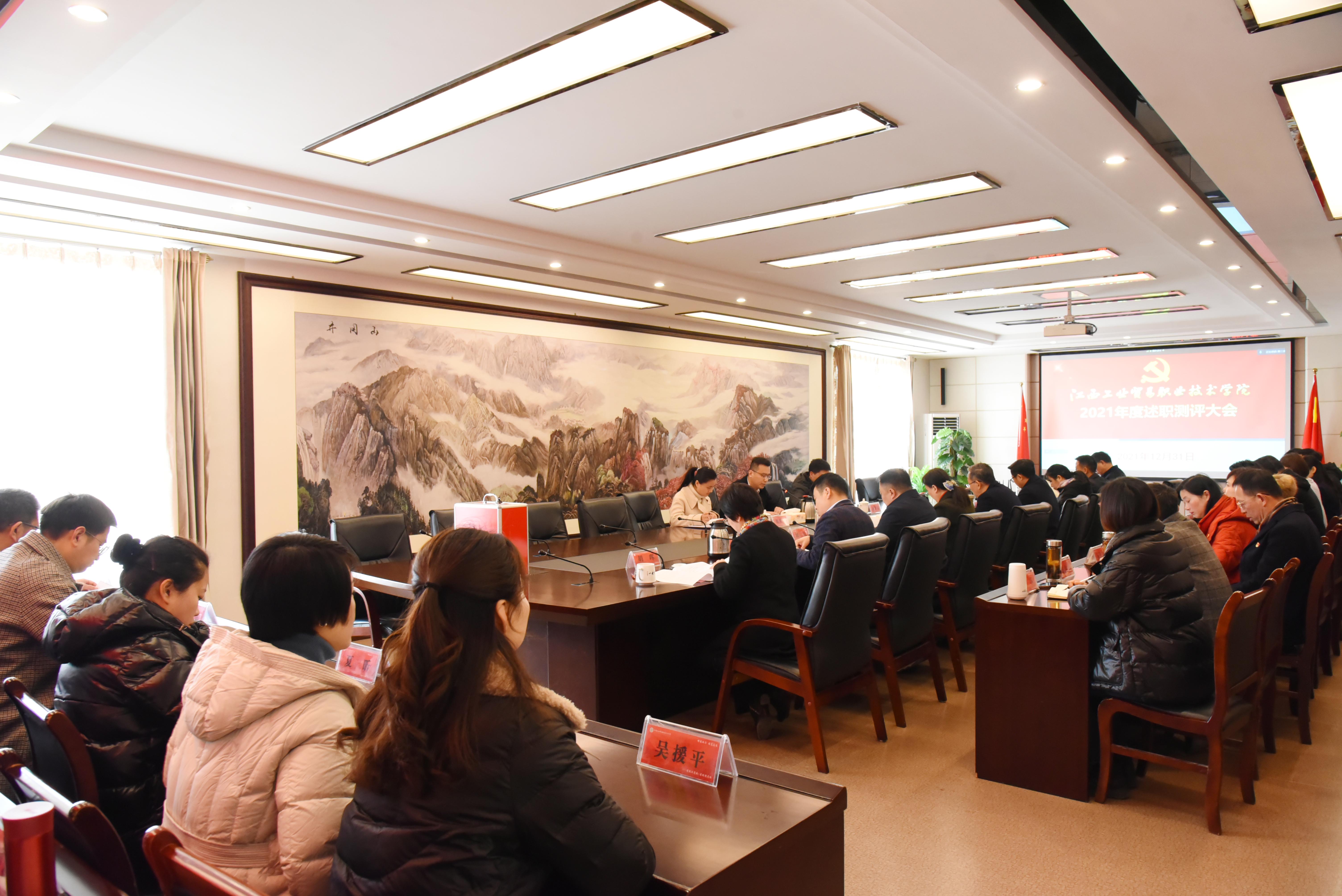 为进一步加强学院党委领导班子和干部队伍建设,根据省粮食和物资储备局工作安排,2021年12月31日上午,学院召开2021年度领导班子和领导干部述职测评大会。省粮食和物资储备局考核组组长、人事教育处处长雷振宇一行来校对党委领导班子和领导干部进行测评,学院党委书记万玉青,党委副书记、院长雷筱芬,党委副书记彭锐,党委委员、纪委书记何锐,党委委员、副院长赵淑华、宋小兵、刘国红、胡晖,党委委员、院长助理艾苏龙,全体中层干部、教职工代表参加测评会议。