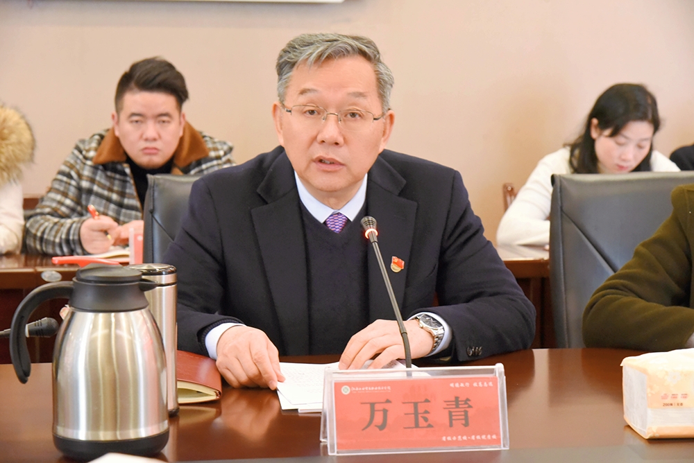 会上,万玉青代表学院领导班子从履职情况和工作亮点、当前党建工作存在的问题及原因分析、2022年工作思路和改进措施三个方面作2021年度述职述廉报告。2021年,学院领导班子在省局党组的坚强领导下,团结带领全体党员干部职工忠诚履职、攻坚克难、拼搏奋斗,较好地完成各项工作任务。一是深入学习贯彻习近平新时代中国特色社会主义思想,坚决拥护“两个确立”,坚决做到“两个维护”,学史明理增强政治自觉、学史增信增强政治能力、学史崇德增强政治本色、学史力行增强政治担当;二是服务中心大局,以高质量党建引领和保障学院高质量发展,建设培根铸魂的育人高地、建设赣鄱人才培养高地、建设体制机制的创新高地;三是以斗争精神从严管党治党,坚决扛起管党治党政治责任和主体责任。