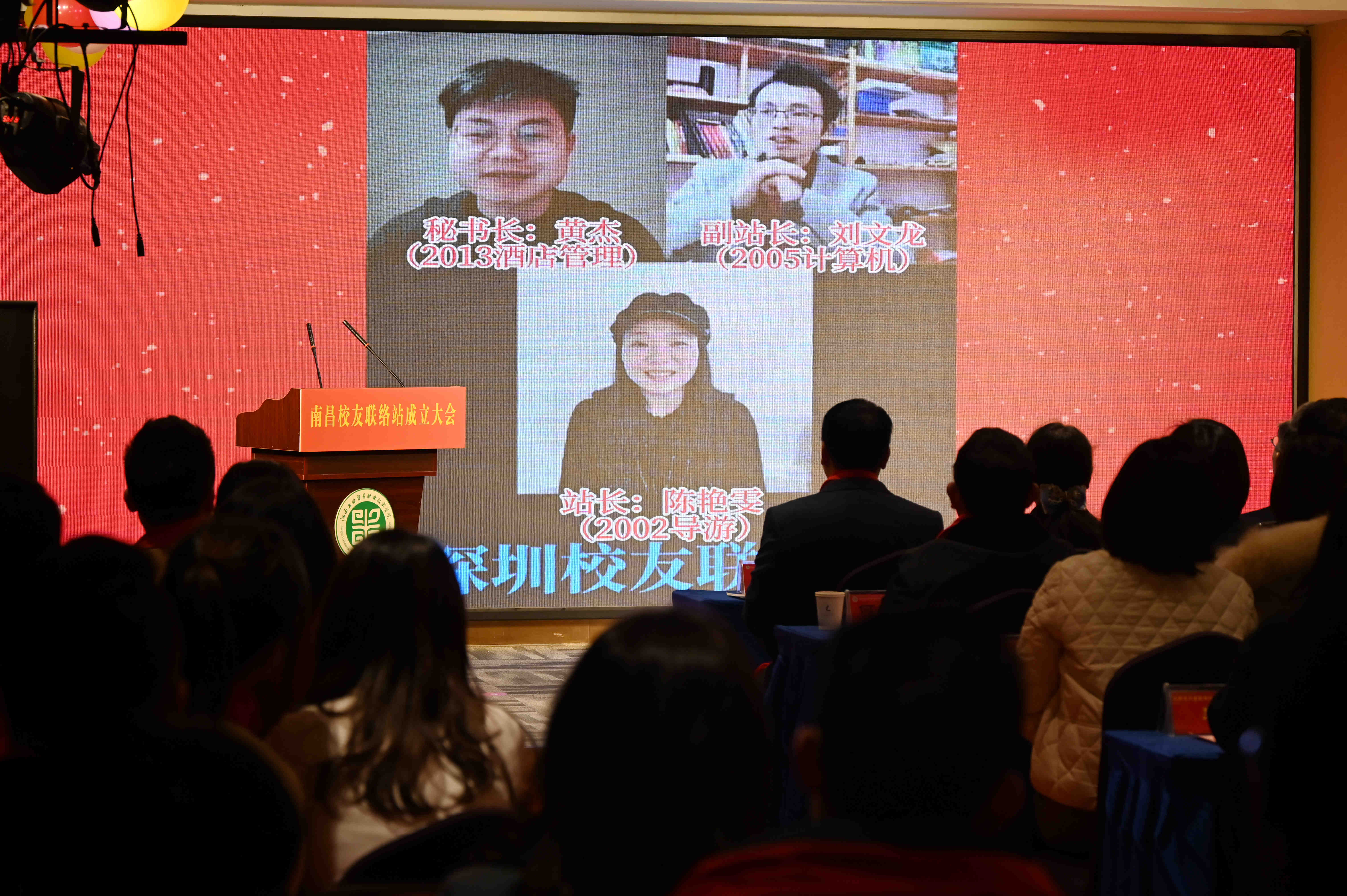 万玉青、陈振龙共同为南昌校友联络站揭牌;万玉青、雷筱芬为南昌校友联络站组织成员颁发聘书。全体参会人员观看了各地区校友联络站发来的祝福视频。