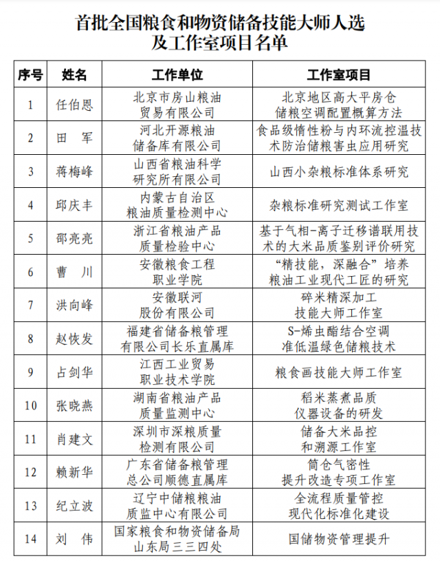 近日,国家粮食和物资储备局发布《关于印发首批全国粮食和物资储备技能大师人选及工作室项目名单的通知》(国粮办人〔2022〕5号),学院占剑华老师荣获“首批全国粮食和物资储备技能大师”和“粮食画技能大师工作室”,此次评选,经组织推荐、资格审核、专家评审,国家粮食和物资储备局党组审核同意,并经公示无异议,全国共遴选确定了首批14个技能大师及工作室。