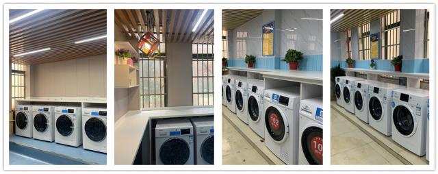 新型自助洗衣房为同学们的日常生活带来的是前所未有的便捷,通过洗衣APP或微信公众号实现了在线预约、下单、查看洗衣进度、完成提醒、网络支付等服务,实现了——“遥控洗衣”;同时,自助洗衣机还自带了桶自洁和银离子杀菌功能,特别是除菌率99.99%的纳米银离子除菌技术,为学生提供接近无菌的洗涤环境。