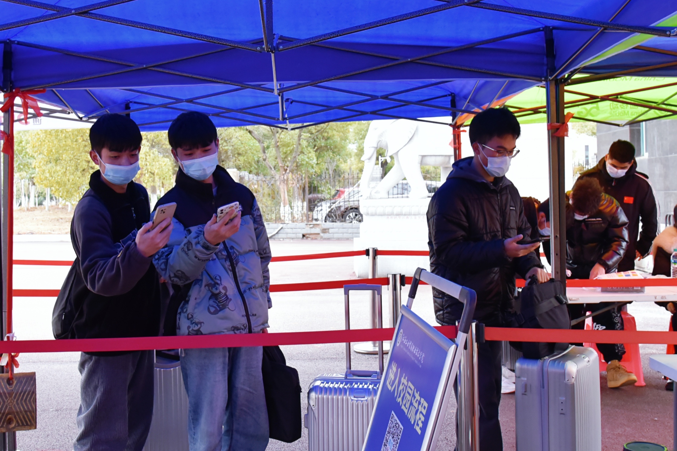 学院各相关部门、专业系部紧密配合、压实责任,严格落实防疫要求,周密制定了学生返校工作方案、疫情防控工作方案和突发疫情应急预案,全面掌握返校师生健康状况,引导师生返校途中做好个人防护。返校期间严格落实进校扫码、测温等防控措施,设置了学生入校专用通道,无特殊原因家长车辆不得进入校园。同学们入校时主动配合现场老师的“四必查”工作(口罩必戴、行程卡和健康码必扫、体温必测、省外低风险地区学生返校48小时核酸检测阴性证明),保持安全距离,有序进入校园。