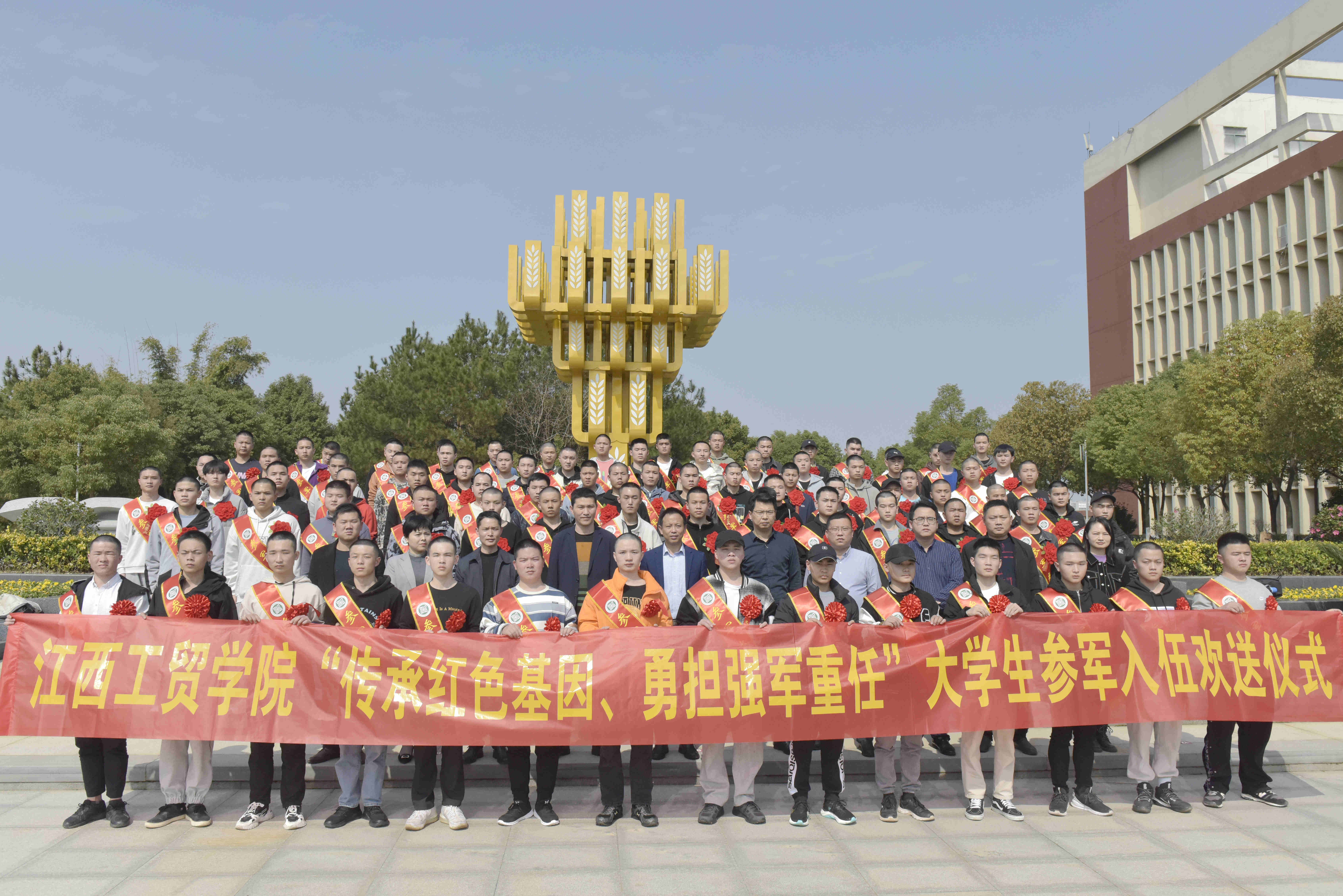 全体应征入伍大学生进行了参军入伍宣誓,大家纷纷表示将牢记学院领导的殷切嘱托,坚定报国意志,努力投身役前训练,发扬吃苦耐劳精神,用自己的青春和力量筑牢祖国的钢铁长城,早日成为合格军人,立志为国奉献、为部队争光、为母校添彩。学院领导为应征入伍大学生佩戴大红花并合影留念,新兵们精神抖擞、神采奕奕,目光中充满着对军旅生涯的向往和报效祖国的赤诚之情,在热闹的锣鼓声中踏上新征程。