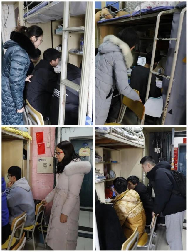 为落实学院春季开学工作部署,保障2022年春季教学活动有序进行,按照学院疫情防控要求,学生返校后在宿舍进行线上教学。同时为了进一步加强宿舍管理,确保学生人身安全,创造安全,文明、和谐的宿舍环境,缓解开学压力。2022年2月24日14:30,学院党委委员、副院长刘国红,学工处处长李尊华,机电工程系副主任刘颖,辅导员老师深入学生宿舍进行了安全、卫生检查,上课情况检查,并对同学们的线上教学情况进行了解。