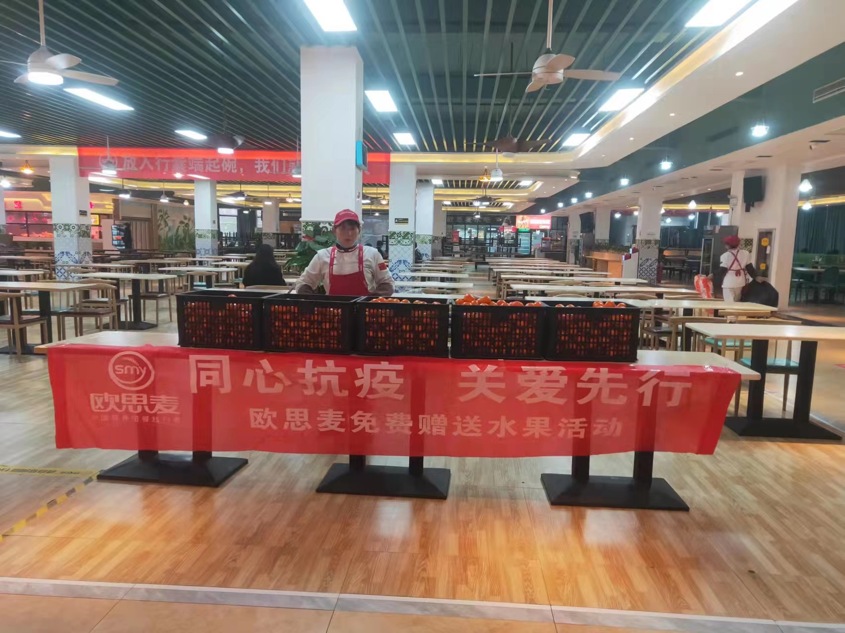 ——储备物资,铆足底气。“从6时至23时,从0步到3万步,58岁的刘少华老师如一头老黄牛,勤勤恳恳、任劳任怨督促食堂、商铺做好学院万余名师生日常供餐保障、食品及生活物资储备,组织协调好262名后勤从业人员的日常行程排查及核酸检测”。后勤保障处积极行动,与疫情防控办、资产管理处等部门共同编制防疫物资数量清单,畅通物资采购渠道,洗手液、喷壶、口罩等防疫物资已满足本学期的储备需求,学院食堂、超市库存量按不少于7天用量进行优化动态储备、平稳物价,确保食材新鲜与食品卫生安全,使学院在当前疫情防控形势下有相应的物资保障。在物资紧张的特殊时期,食堂还为学生免费赠送水果,这一暖心举措赢得广大学生点赞,让这个“倒春寒”的季节不再“寒冷”。
