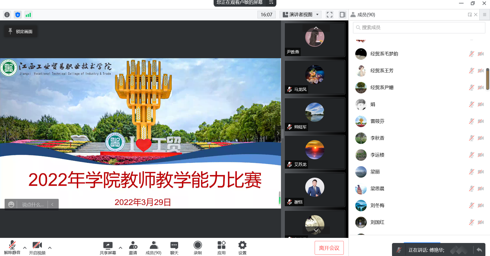为持续深化教师、教材、教法“三教改革”,推进高水平、结构化教师教学团队建设,提高学院广大教师的师德践行能力、教学实践能力、综合育人能力和自主发展能力。根据疫情防控要求,3月29日,学院通过线上比赛的形式顺利完成2022年教师教学能力比赛校级选拔赛。本次比赛共有14支教师团队进入决赛,33位学术委员会成员和2021年国赛获奖教师担任比赛评委,院长雷筱芬观摩比赛并作总结讲话。