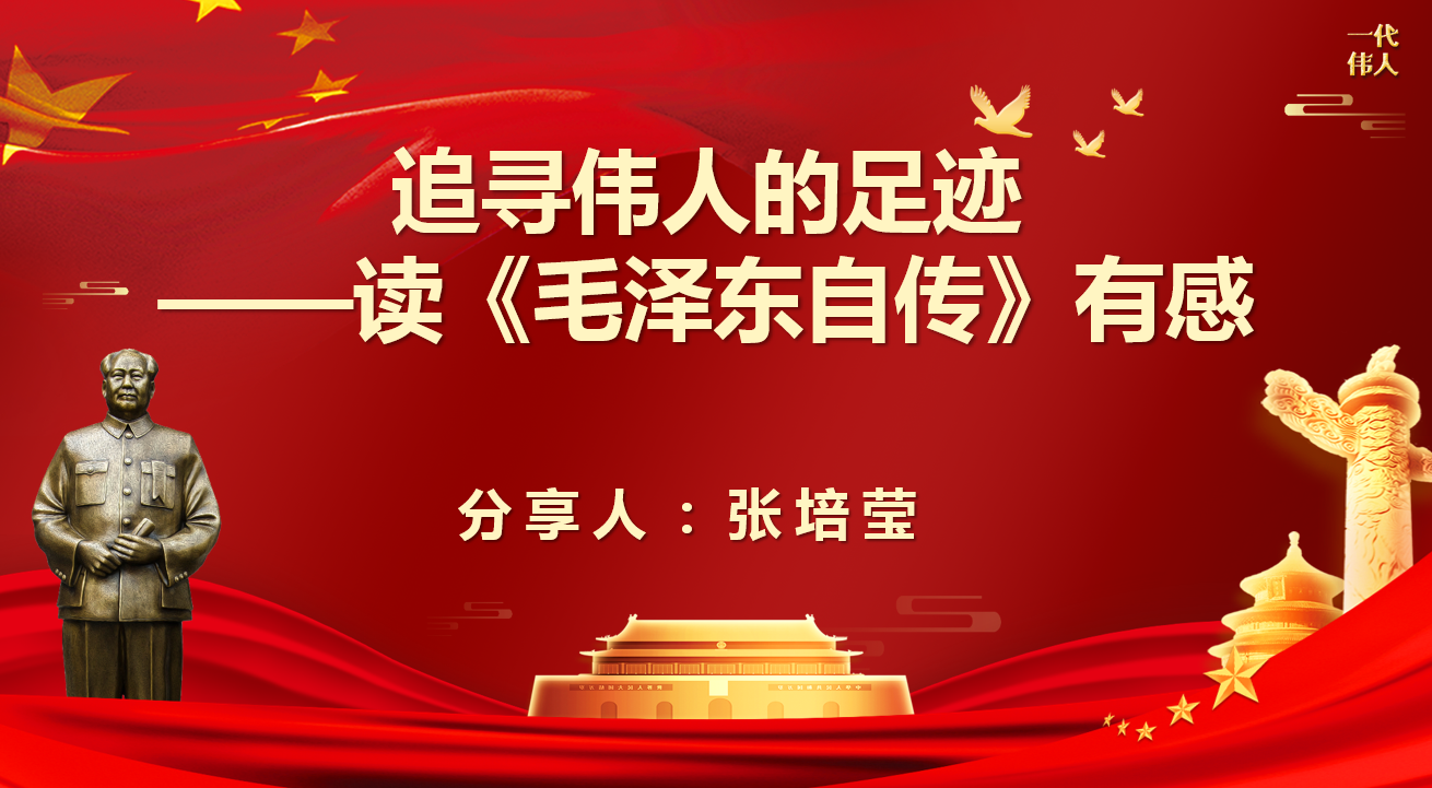 张培莹老师以“追寻伟人的足迹——读《毛泽东自传》有感”为主题进行分享,她详细分享了毛泽东的生平事迹、丰功伟绩以及如何科学评价毛泽东。她还分享了读这本经典传记的四重收获:“可领略奋斗之美、可见识历史之真、可感受理论之温、可体会人物之亲”,她真切希望所有老师能够多品读红色经典书籍,传承好红色基因,赓续好红色血脉。