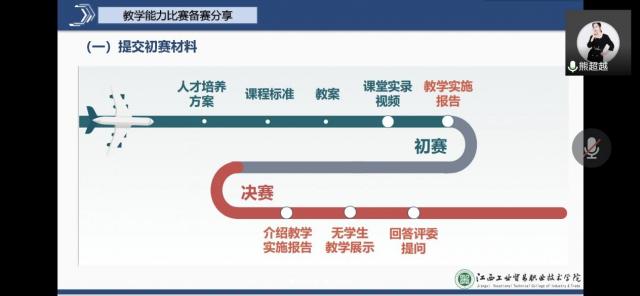 为帮助系部教学能力竞赛参赛团队更好的备赛,2022年4月26日14:20旅游商务系2021年省赛一等奖队伍西餐团队负责人熊超越老师在线上进行了省赛经验分享活动。旅游商务系主任谢恺,副主任韩莹,黄婧及全体教师参加了会议。