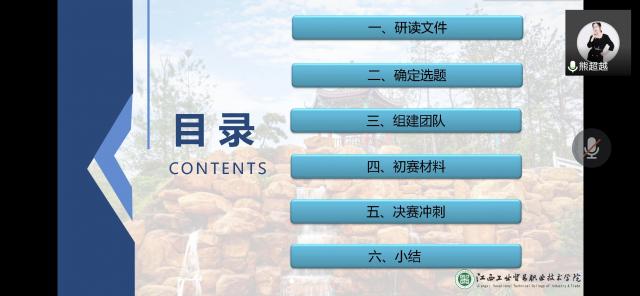 活动最后,谢恺主任进行了总结讲话:“熊超越老师今日就比赛的注意事项,心理因素等方面做了详细的剖析,给我们后期准备的老师一个好的借鉴。”同时,谢主任对我们系部老师的线上教学提出了严苛要求。韩主任:“熊老师对比赛文件给予了详细的解读,对于我们现在备赛的老师和即将备赛的老师都是一个好的参考。