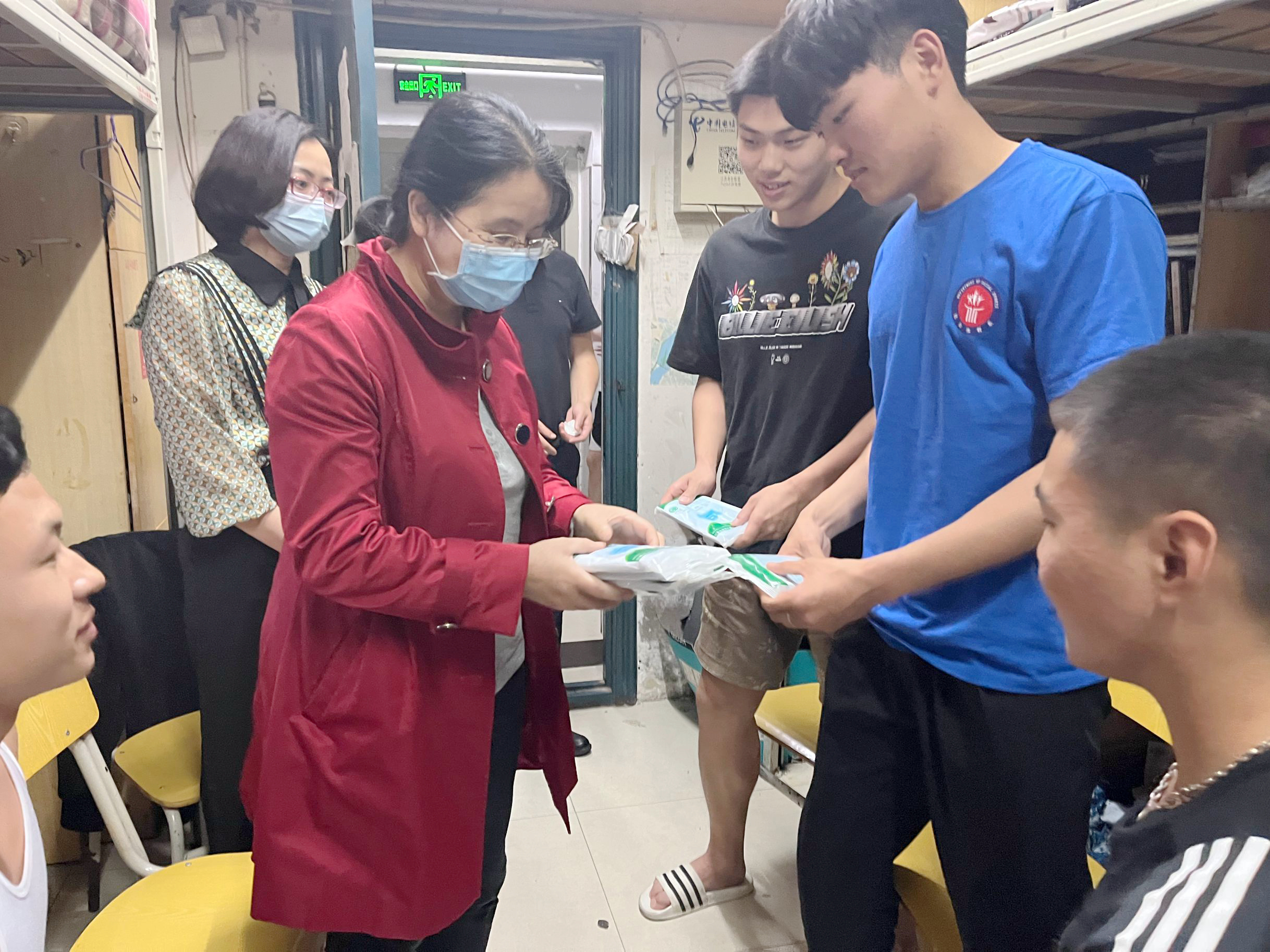 为深入了解学生学习生活近况,5月17晚上,赵淑华走进社会体育系学生寝室,了解寝室卫生、晨午晚检以及消杀情况,并与同学们交谈,亲切询问疫情期间的同学们的心理状态和生活困难,同时赠送口罩,提醒大家要继续做好个人防护,时刻紧绷疫情防控这根弦,筑牢疫情防控墙。赵淑华细致入微的关心,让同学们倍感温暖。通过此次“双体验日”活动,同学们零距离与院领导一起学习交流,进一步增强了社会体育系思想政治工作的针对性和实效性。同学们纷纷表示,要坚定不移跟党走,赓续红色血脉,做党和人民需要的先锋,在实现中华民族复兴的赛道上奋勇争先,争做堪当民族复兴大任的时代先锋!