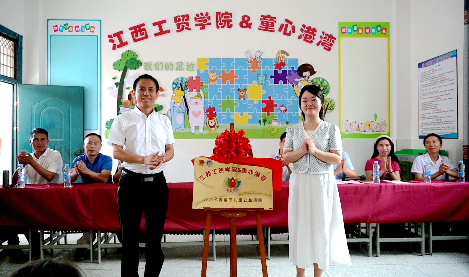 学院党委委员、副院长刘国红,信州区秦峰镇党委书记岳贤猛,共青团信州区委书记王莹,信州区秦峰镇人大副主席王珺,信州区秦峰镇副镇长、团委书记鄢寒瑾,信州区教体局资助中心主任林晓波,信州区教体局团工委书记陈乾程,信州区秦峰镇中心小学校长郑维峰出席活动,揭牌仪式由信州区秦峰镇新塘村第一书记谢荣华主持。