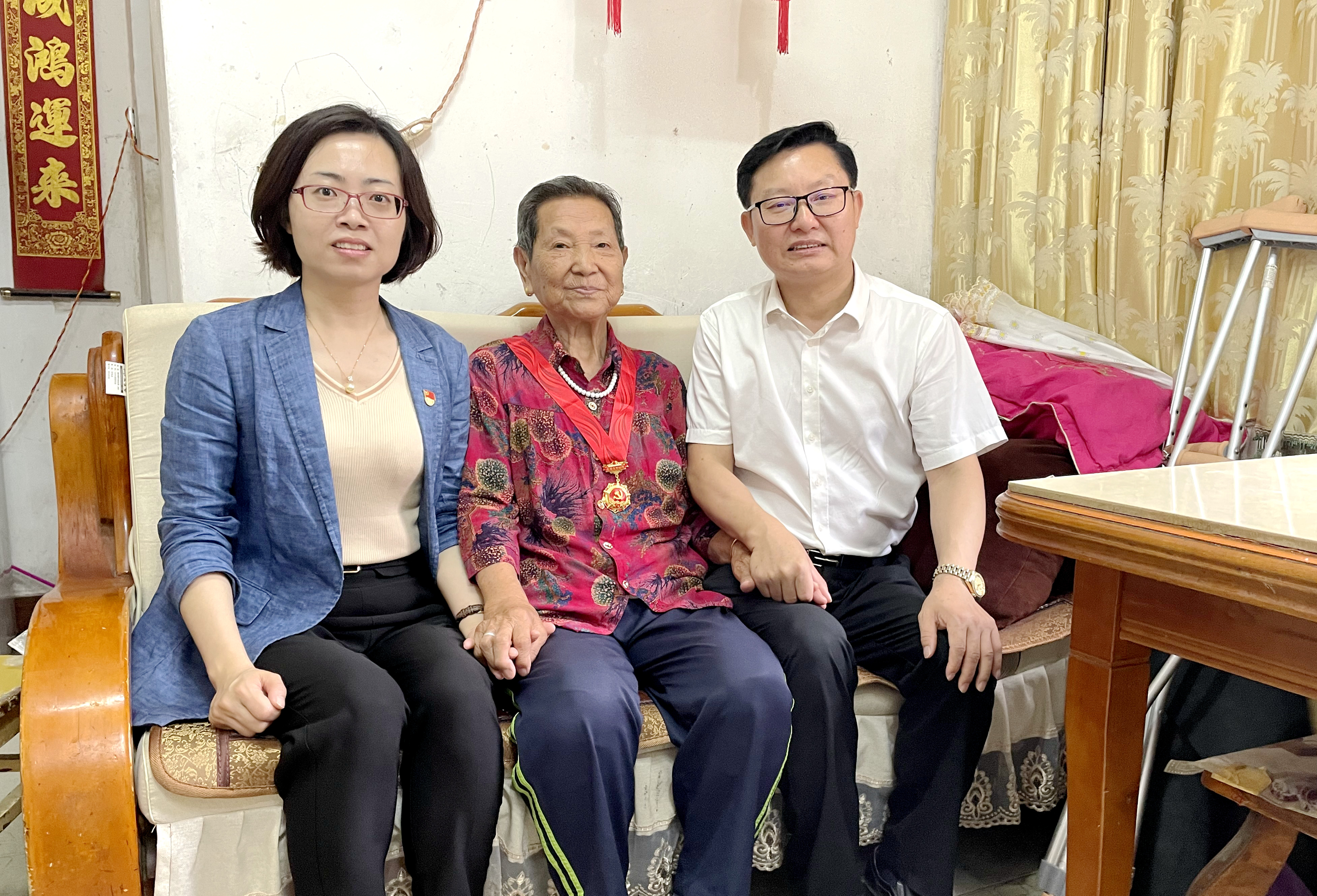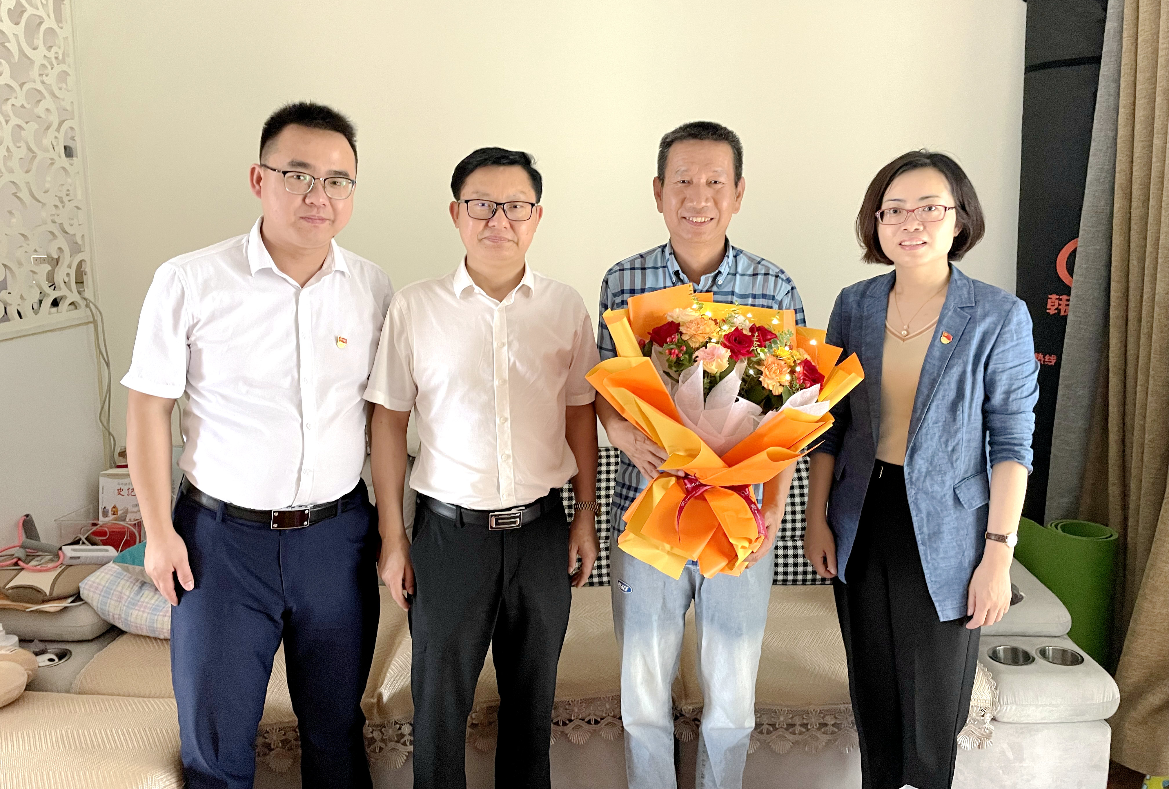 在庆祝中国共产党成立101周年之际,江西工业贸易职业技术学院开展“七一”走访慰问活动。6月30日至7月1日,学院党委副书记、院长雷筱芬,党委副书记彭锐,党委委员、副院长、工会主席赵淑华分别走访慰问老党员张金枝、陈金秀两位同志,颁发了“光荣在党50年”纪念章,并向她们致以亲切的问候和节日的祝福,送去党组织的关怀和温暖,学院领导同时亲切看望了退休民主党派人士代表廖跃华、胡赣萍两位老师,并送上鲜花和慰问品。党委办公室、工会办公室负责人陪同走访。