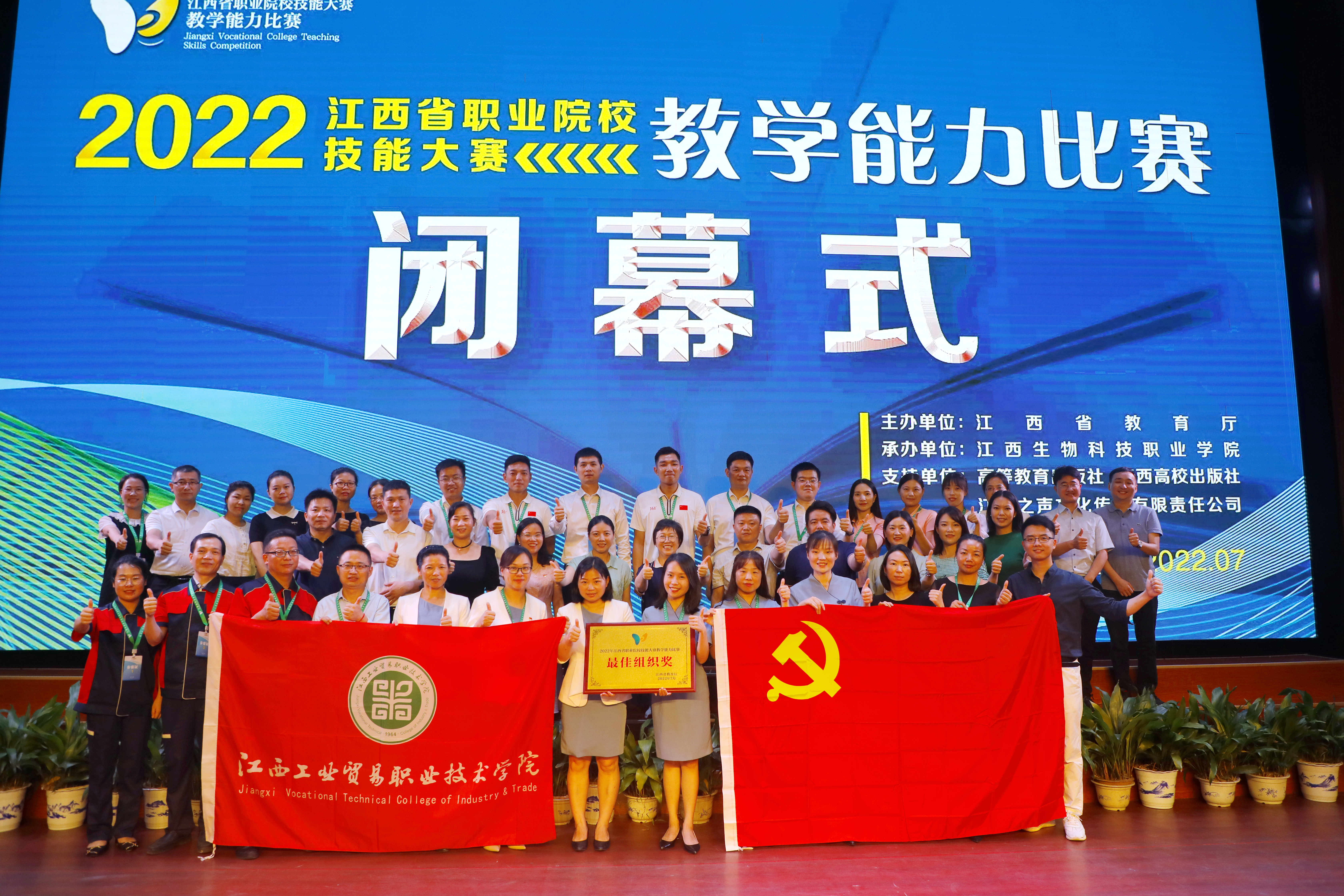 仲夏时节,万物并秀。7月3日,由江西省教育厅主办的2022年江西省职业院校技能大赛教学能力比赛决赛在南昌圆满落幕。全省151所院校的3500多名教师同台竞技,共提交了1066件初评作品,江西工业贸易职业技术学院再次成为全省唯一大满贯入围决赛的院校,9支参赛队伍经过激烈角逐、奋勇拼搏,实现参赛作品100%获奖,荣获一等奖4项、二等奖5项的优异成绩,学院获评“最佳组织奖”荣誉称号,该项赛事学院获奖成绩连续三年排名全省第一。