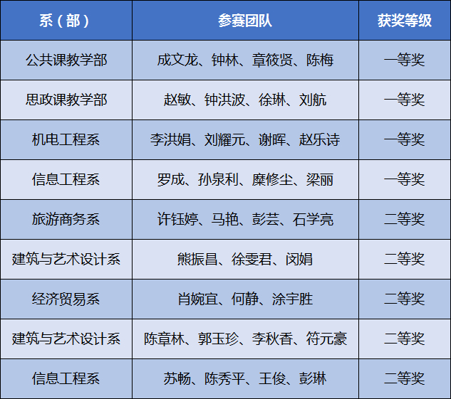 学院将进一步提高政治站位,将教师教学能力比赛作为教师职业能力提升的催化剂,以大赛为切入点,以赛促教、以赛促学,以赛促改、以赛促建,持续深化“三教”改革,推动高水平、结构化教师教学团队建设,提高教师的师德践行能力、专业教学能力、综合育人能力和自主发展能力,推动示范性教学,不断提高专业人才培养质量,为推动江西职业教育高质量发展贡献工贸力量。