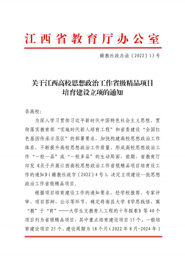 学院获批2022年江西高校思想政治工作省级重点精品项目培育建设立项