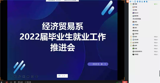 7月21日下午,经济贸易系举行了2022届毕业生夏季线上双选活动,邀请地方优质企业6家,提供岗位80余个,共有100人次参与本次线上双选,当场达成意向学生20余人。