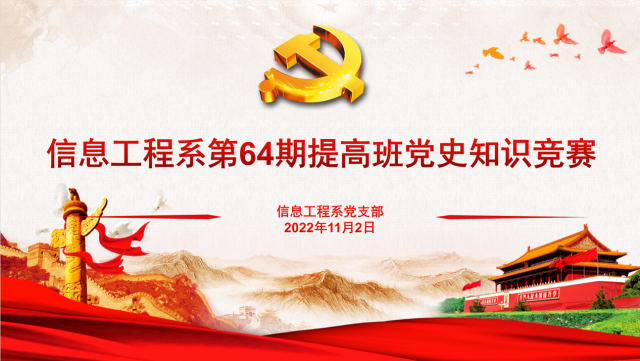 为持续深入学习宣传贯彻党的二十大精神,掀起全系参与学习贯彻党的二十大精神热潮,积极引导广大青年学生深刻领会和把握大会的精神实质和丰富内涵。信息工程系党支部11月2日19:00于思泽楼306举办“青春向党逢盛世·学思践悟二十大”党史学习教育知识竞赛。