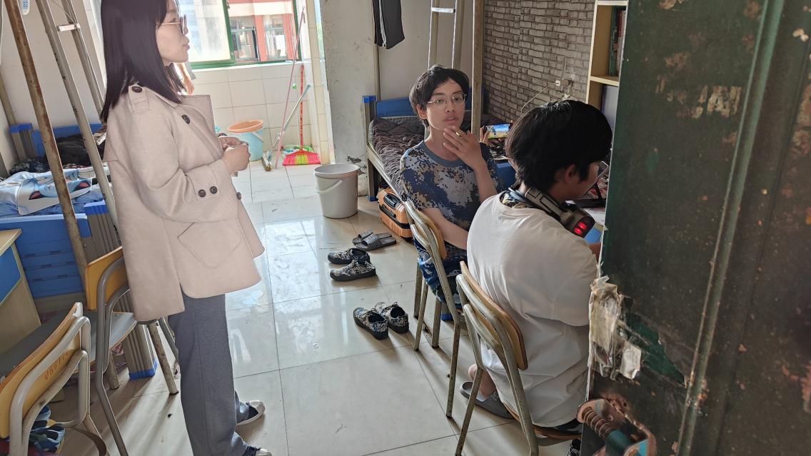 陶晓峰带领辅导员们深入7栋宿舍楼宇,554间宿舍开展大排查。大家分工合作,根据系部“楼栋分层、责任到人”宿舍大排查原则,重点针对宿舍走廊的消防箱、宿舍内乱拉电线、大功率电器、电源插座、管制刀具、吸烟酗酒、宿舍物品堆放等影响宿舍安全的重点部位进行全面排查。经过排查,发现宿舍楼存在一处安全出口指示牌已损坏,五处电源线裸露,两个大功率电器,两处物品摆放于柜子上方存在安全隐患。