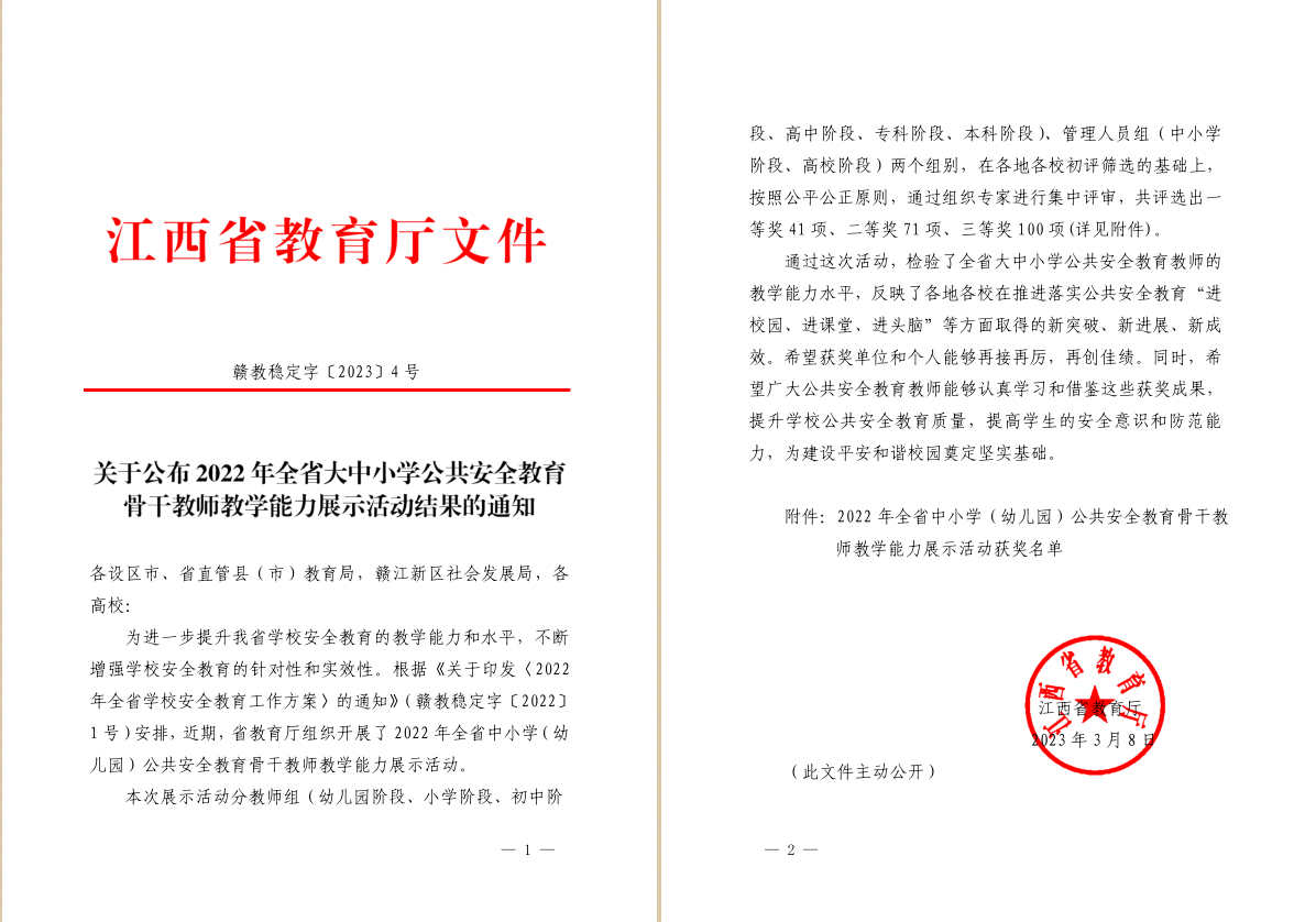 学院在江西省大中小学公共安全教育骨干教师教学能力展示活动中再创佳绩