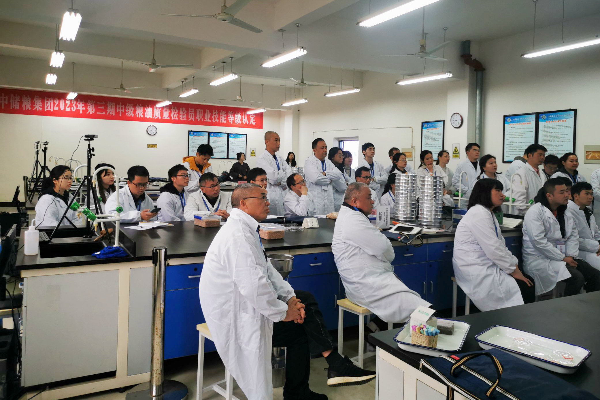 粮油保管员和粮油质量检验员两期职业技能培训均属于国家级职业技能等级鉴定。来自江西宜春、万年、永修、吉水、鹰潭等30个分公司所辖直属库、直管库的60名中央储备粮保管业务骨干和60名中央储备粮检验业务骨干参加本期技能等级认定。
