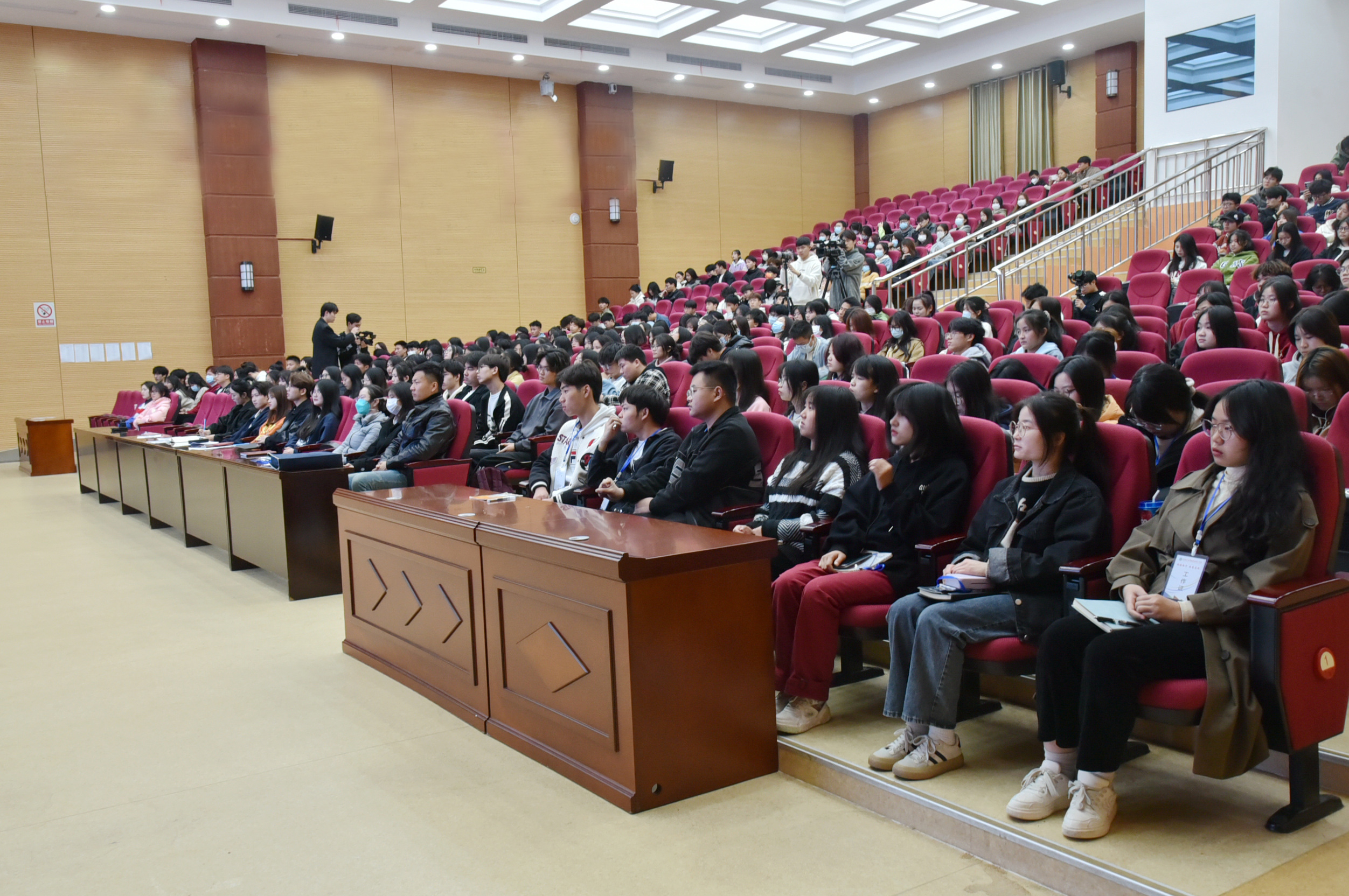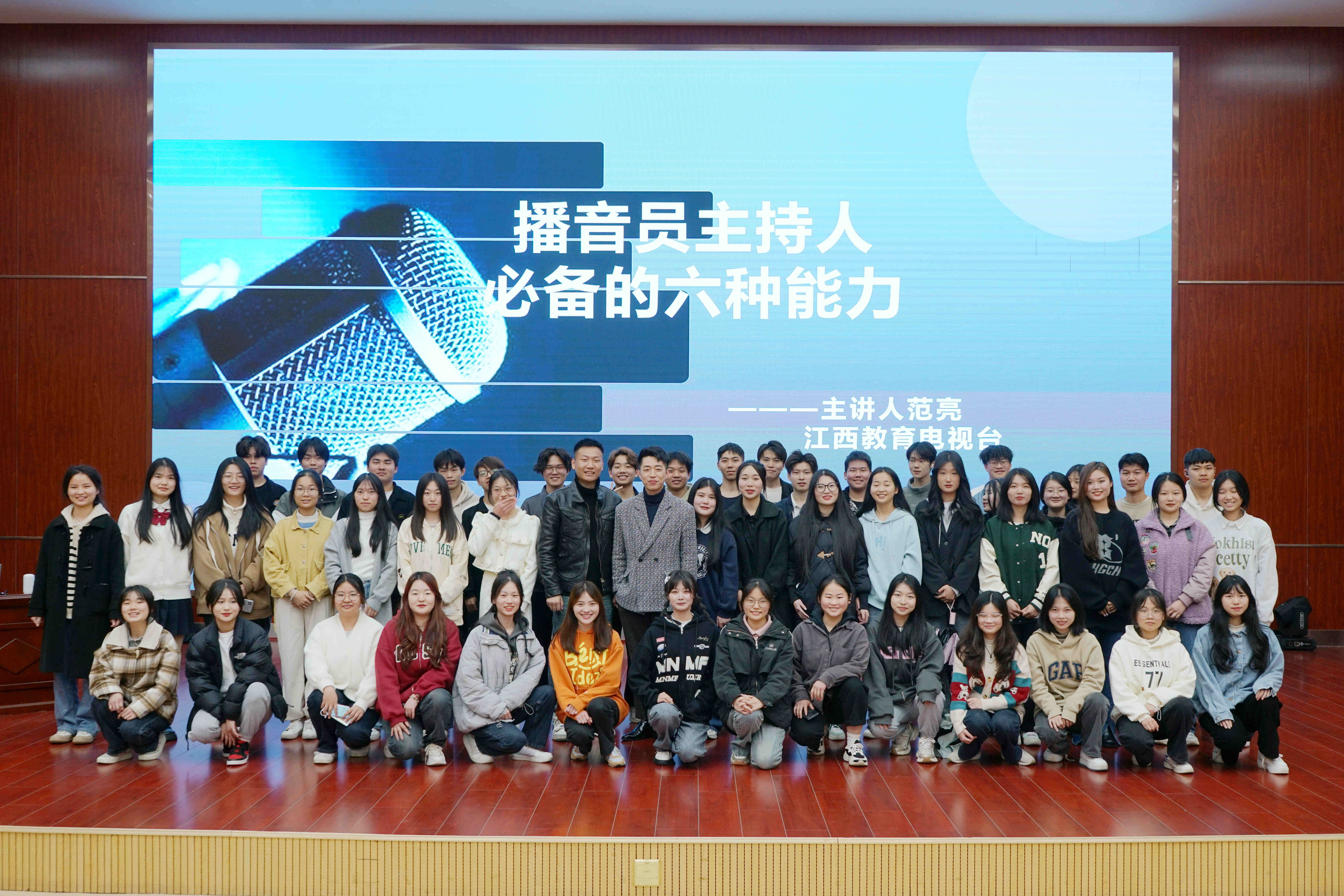 为深入学习贯彻党的二十大精神和全国两会精神,进一步加强和改进新闻宣传工作,提高广大师生及宣传工作队伍的新闻播音主持水平,增强新闻宣传效果。3月27日晚,学院在图书馆学术报告厅举行以“强化专业素养、提升职业能力”为主题的广播电视新闻播音主持实务专题讲座。此次讲座党委宣传部特别邀请江西教育电视台新闻主持人范亮老师与大家分享他的工作经验、播音主持心得,学院党委宣传部融媒体中心、大学生主持人基地、各系部学生代表共计300余人聆听了此次讲座。