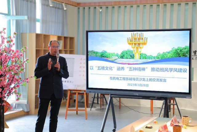 粮食文化产业研究中心主任李运楼从发现美讲好五粮文化、涵养美弘扬五种精神、展示美建好班风学风三个角度出发,详细解读了以“五粮文化”涵养“五种精神”推动班风学风建设的主题交流分享。