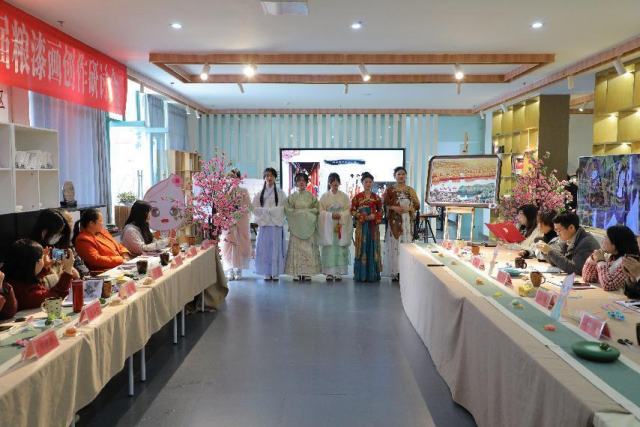 大家一边制作徐悦欣老师一边讲解绒花的起源,绒花是一种历史悠久的传统装饰,最初作为发饰产生,起源于唐代......绒花也会随着时代的变化而发展。