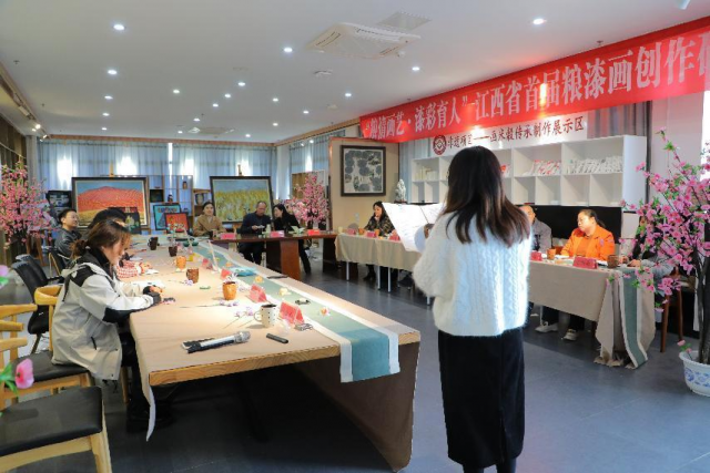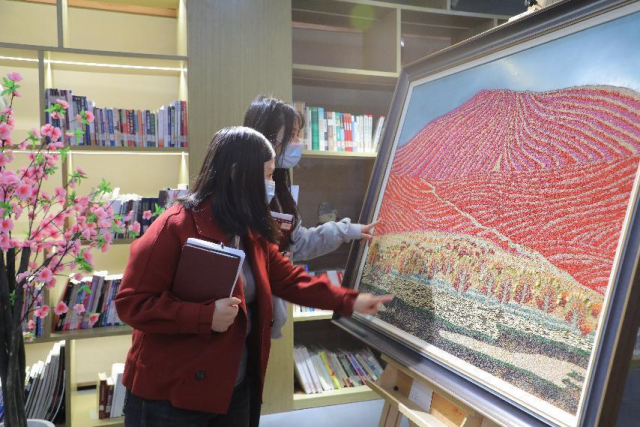 在熟读了李运楼对学院五粮文化育人的深刻解读后,在场辅导员对学院粮食文化赋能文创产品、粮食画、粮漆画、画米毂参观学习。对五粮文化中的粮艺中的传与新有了进一步的实体感悟。