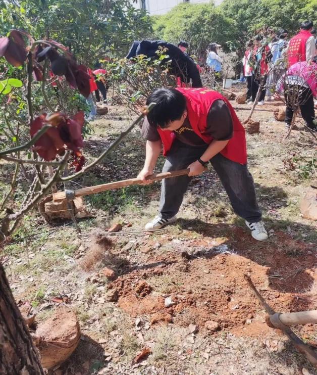 3月10日,信息工程系积极组织学生参加植树护林、环保宣传、节能减排等活动和生态文明宣传教育,在校内开展志愿服务活动,志愿者们准备好植树工具,在工作人员的指导下,分工协作,配合默契,干劲十足,每一道工序做得认真细致,在汗水的浇灌下,树苗迎风而立,焕发出新的生机与活力。