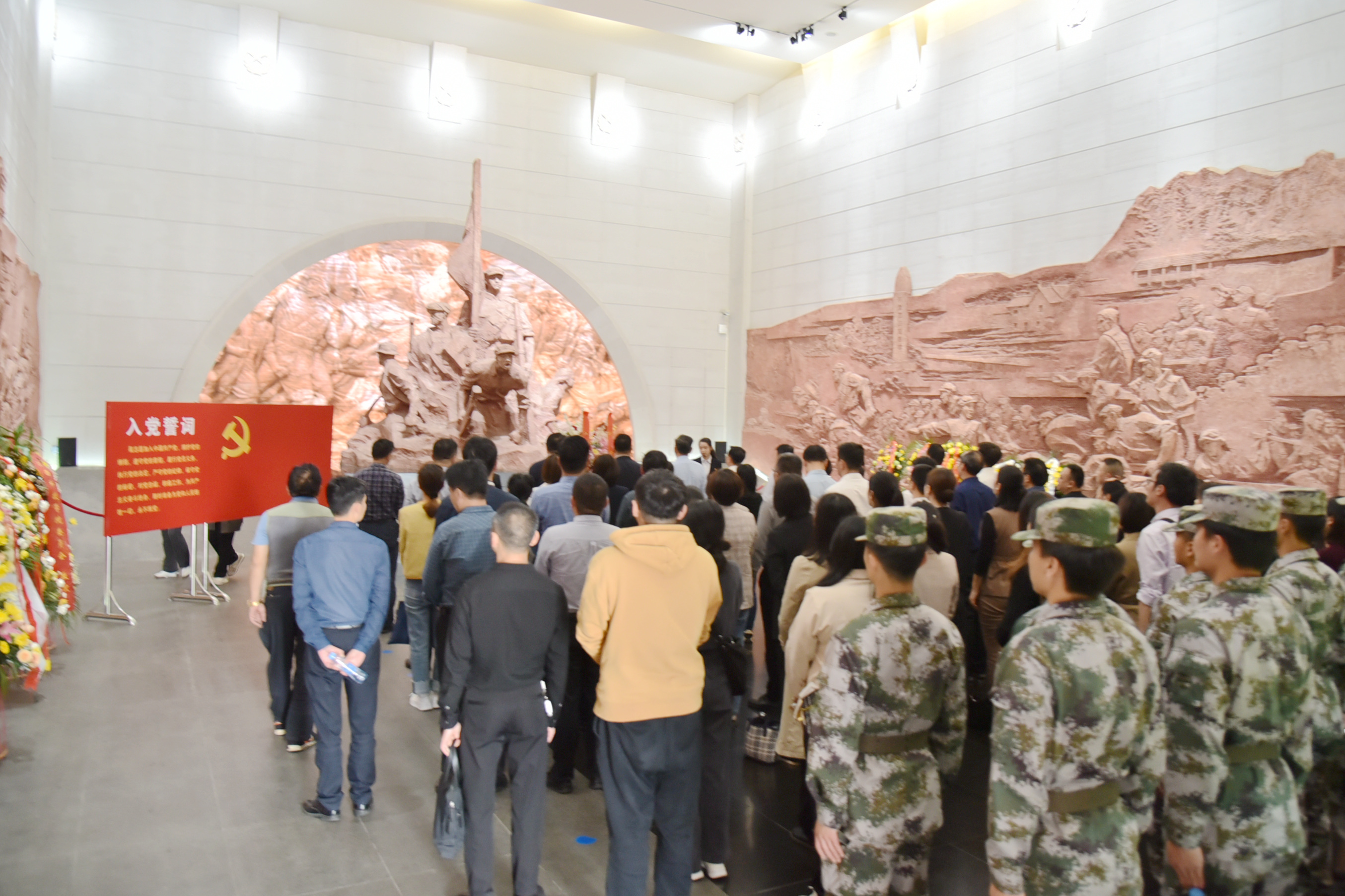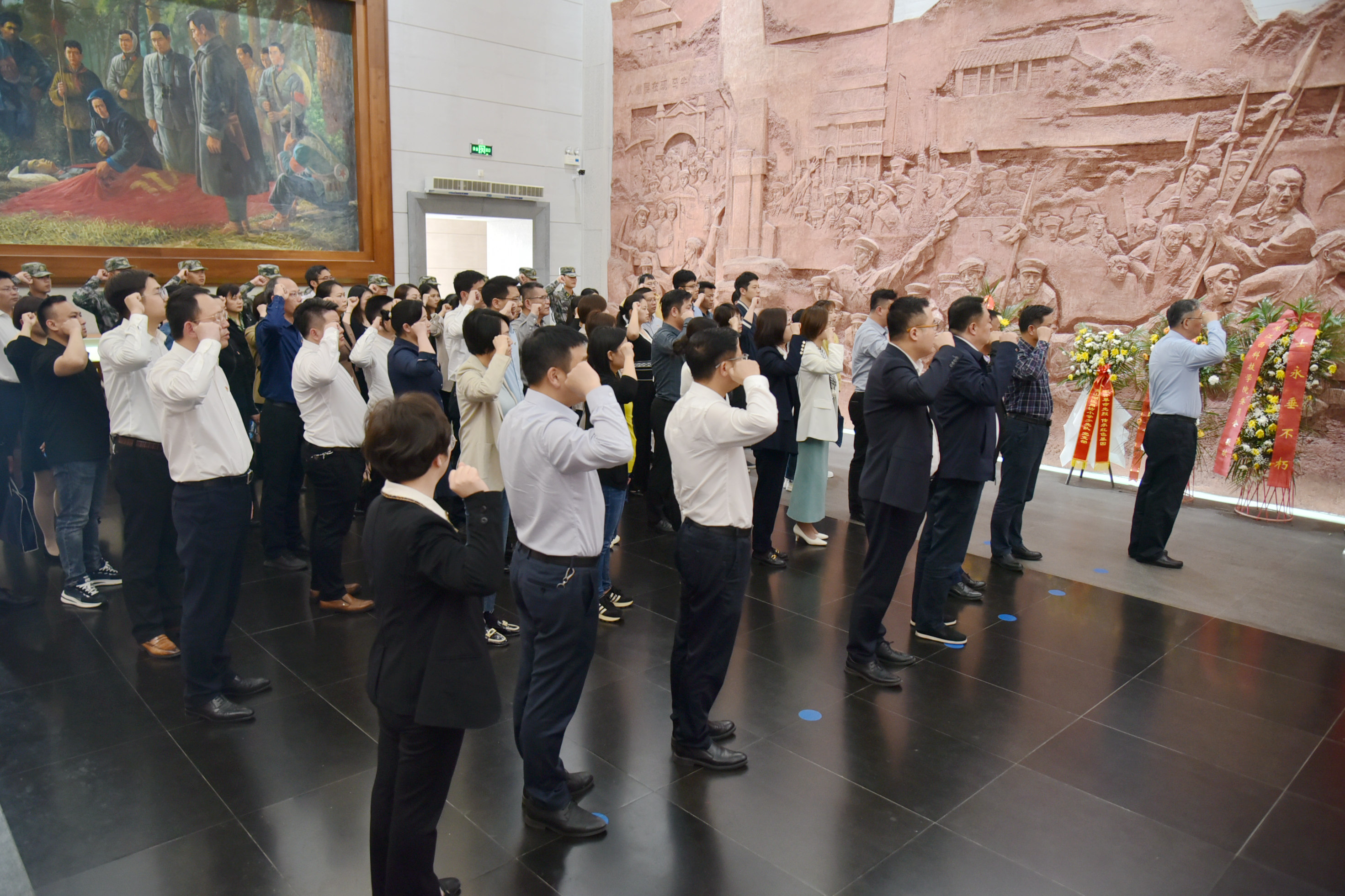 步入江西革命烈士纪念堂,全体党员干部庄严肃立,向革命先烈三鞠躬,并怀着无比崇敬的心情向革命烈士敬献花篮。随后,党委书记万玉青同志带领大家重温入党誓词,重忆入党初心。