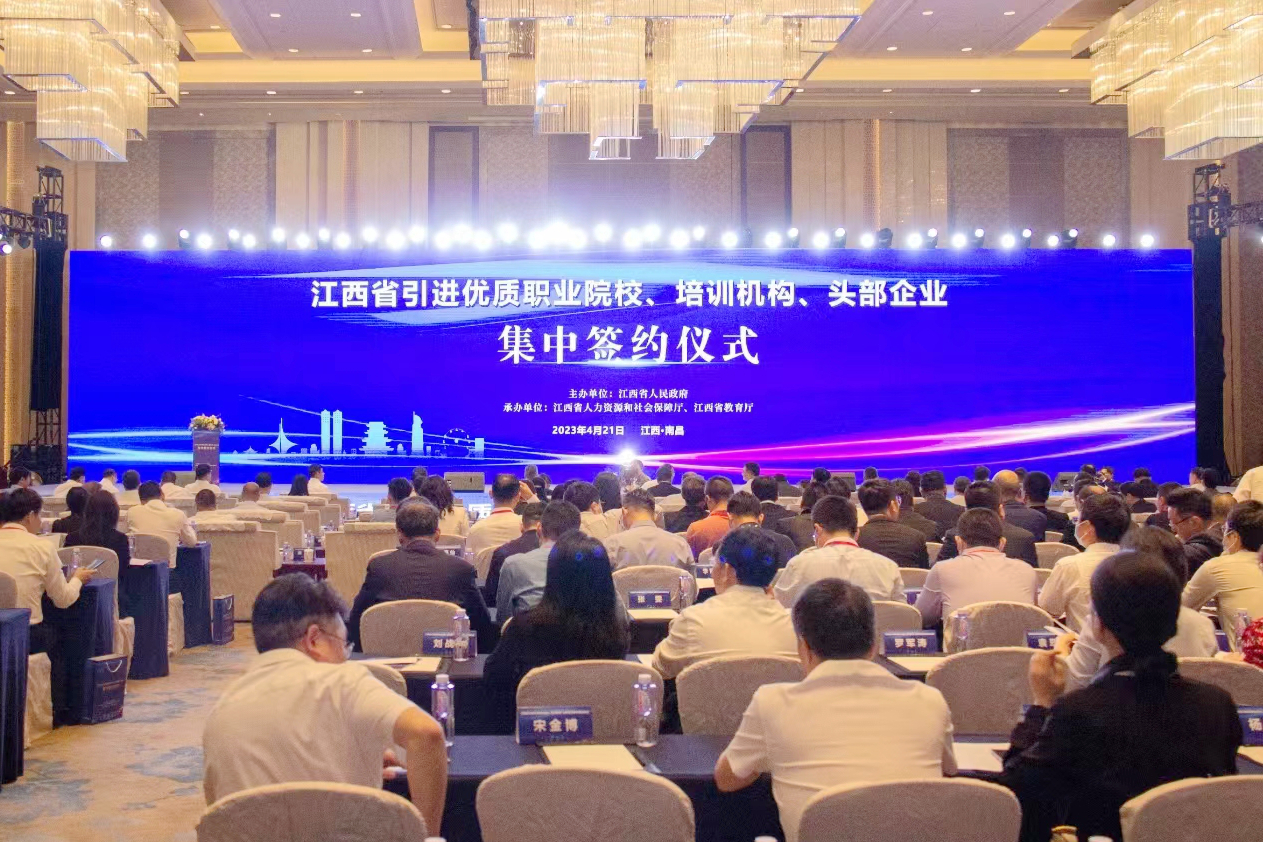 携手打造技能人才高地,奋力推进职业技工教育高质量发展。4月21日,江西省引进优质职业院校、培训机构、头部企业集中签约仪式在南昌举行。省委常委梁桂出席仪式并见证签约,副省长孙洪山主持。省粮食和物资储备局党组成员、副局长李湘晖带队参加签约仪式并与宁波职业技术学院校长吴翔阳、华为技术有限公司中国区产业发展部副总裁陈栋亲切交流,学院党委副书记、院长万晓波,党委委员、副院长胡晖一同参加。